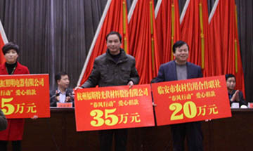 “春風行動”全面啟動 福斯特溫暖關愛困難群體 [2016-01-27][2016-01-27]日前,在臨安市“春風行動”啟動儀式上,福斯特與另外三家企業(yè)率先捐款,其中,福斯特本次捐款35萬元。今年是福斯特參與我市“春風行動”的第5個年頭,累計捐款金額已達120萬元。[查看詳情]