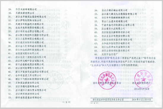 根據(jù)《浙江省創(chuàng)建綠色企業(yè)(清潔生產(chǎn)先進(jìn)企業(yè))辦法(試行)》,我公司在自主申報(bào)的基礎(chǔ)上,依次通過臨安市經(jīng)信局、環(huán)保部門預(yù)審?fù)扑],浙江省經(jīng)信委、環(huán)保廳專家組復(fù)審及社會公示,被正式授予該榮譽(yù)稱號。