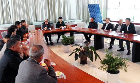 辛莊鎮(zhèn)勞模與公司領導在會議室進行會談