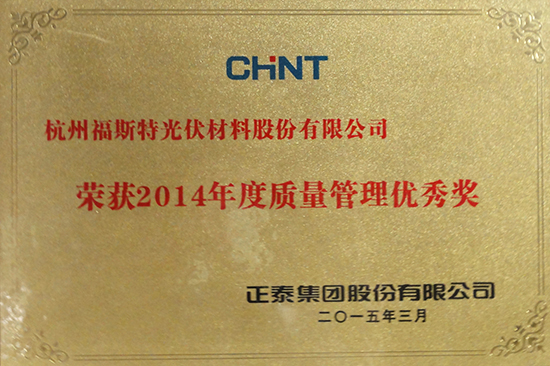 福斯特榮獲正泰集團(tuán)2014年度質(zhì)量管理優(yōu)秀獎(jiǎng)