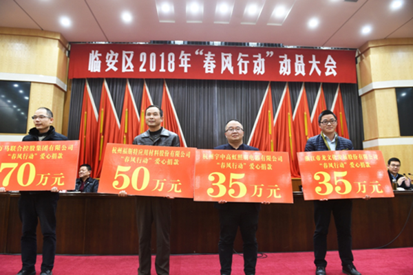 “春風行動”自2001年啟動以來,已經(jīng)成為傳遞社會正能量,普惠困難群體的暖心工程、民心工程和德政工程。1月4日下午,臨安區(qū)2018年“春風行動”正式啟動。啟動儀式上,福斯特與臨安區(qū)另外3家企業(yè)率先捐款,其中,福斯特捐款50萬元。區(qū)委、區(qū)政府領(lǐng)導也紛紛帶頭捐款,幫助困難群眾。